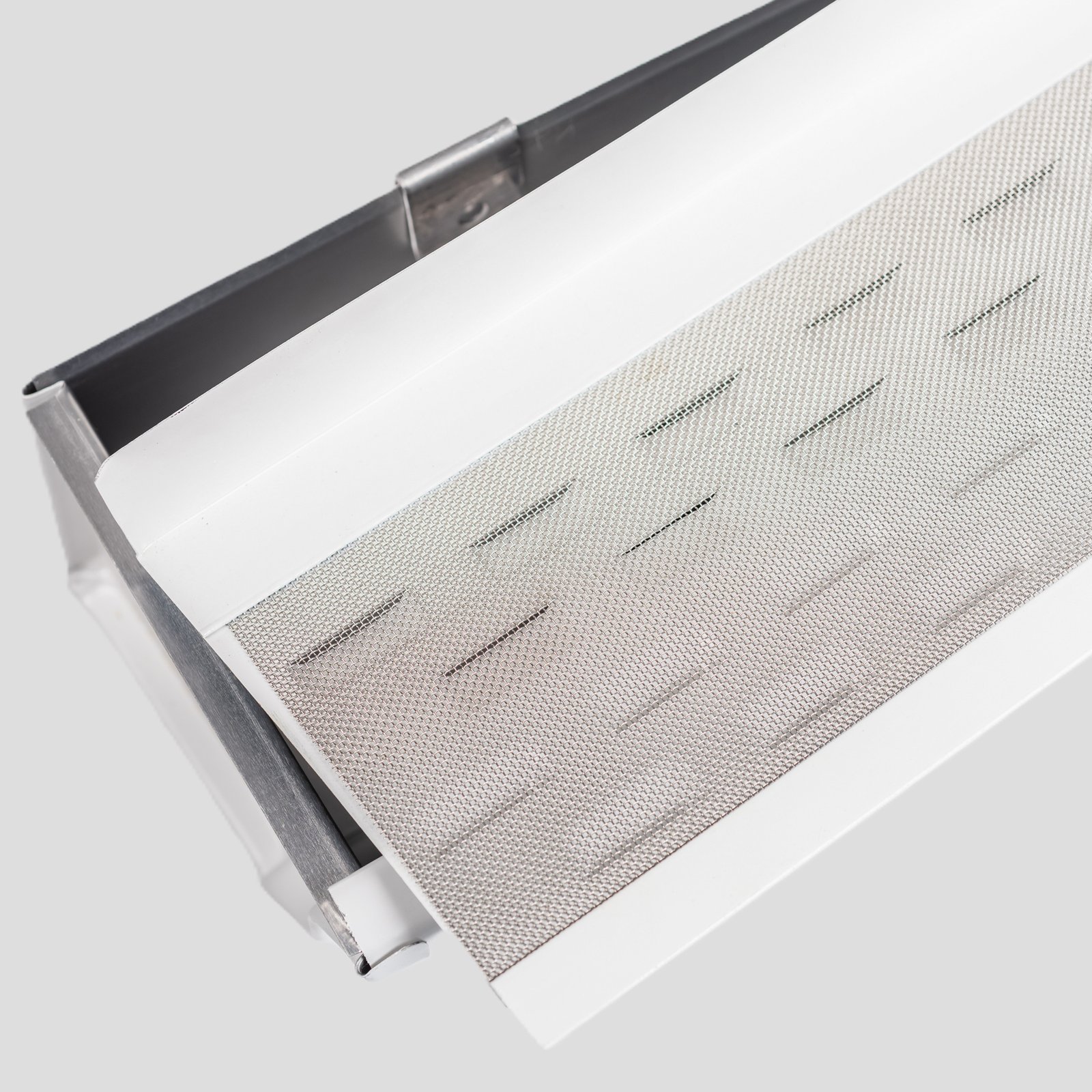 Professional Gutter Guard supplies the ultimate protection from gutter clogging debris on the market. Formed from a single piece of thick durable aluminum plate and topped with stainless steel micro-mesh wire.